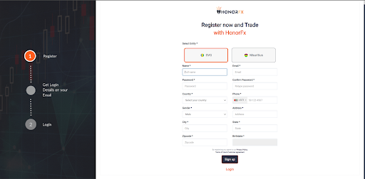 - Bước 1: Đăng ký – Mở tài khoản giao dịch tiền thật với HonorFX